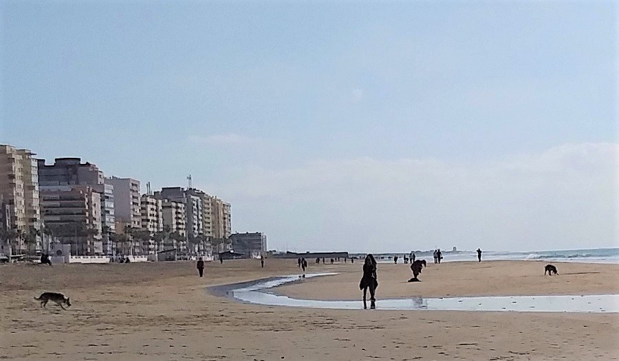 Un turista, joven padre de familia que pasó con su familia la semana de Reyes alojado en uno de los hoteles del paseo marítimo de Cádiz, ha remitido a este periódico una queja y una serie de fotos, denunciando la numerosa presencia de perros que detectó esos días en la playa, con peligro para la higiene y la seguridad de sus hijos menores. Nuestro comunicante, Miguel A.G., denuncia en su email que su hijo más pequeño, de solo dos años de edad, se manchó las manos con excrementos de perro jugando en la arena, al tiempo que perros de diferentes razas, algunas de ellas, peligrosas, eran paseados por sus dueños sin correa ni bozal a escasa distancia de sus hijos.