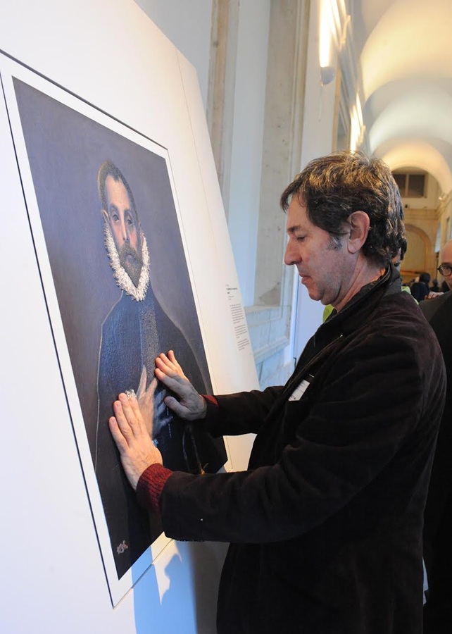 Juan Torre en el Prado, con una de las reproducciones de obras maestras de la institución en las que el Museo ha aplicado la técnica creada por al artista, para que los invidentes puedan “visualizar” los cuadros mediante el tacto.