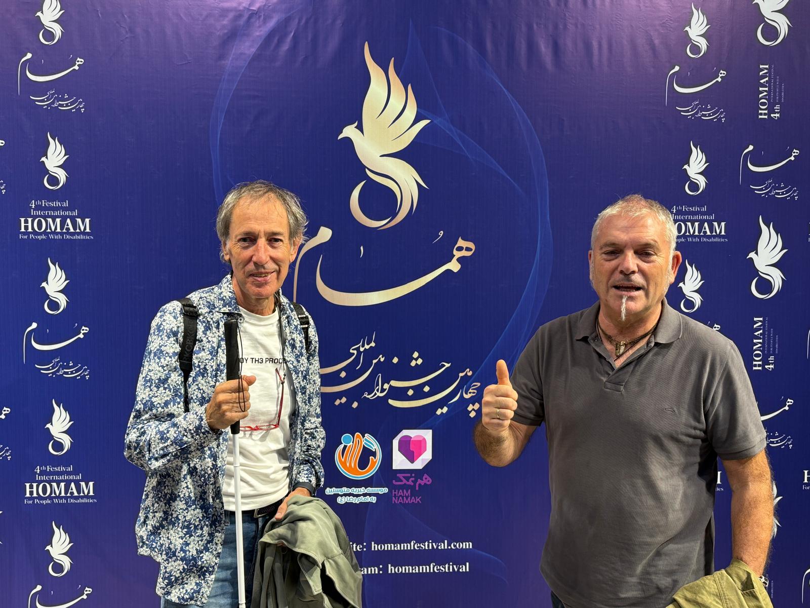 InicioLa extraordinaria aventura vital, profesional y artística de Juan Torre, fotógrafo y ciegoJuan, con Toño Valdivieso, su mano derecha en Teherán y en otras exposiciones.