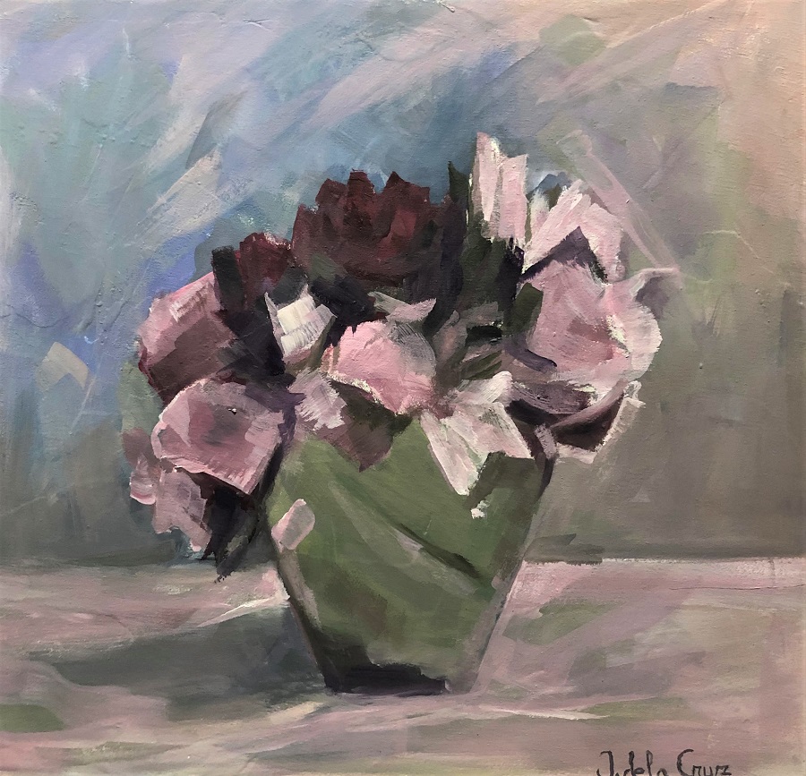 Como retratista es certera y captadora del espíritu del personaje, pero donde alcanza la maestría es con sus flores. Esos cuadros de luminosos bouquets colocados en toda clase de recipientes transparentes u opacos, pero brillantes siempre, son la mejor expresión de su alma. Por ahí accedemos a su limpia transparencia como artista, como profesional, como mujer y como persona. Y es esa trasparencia, que ella da a manos llenas (fulgor que va y viene de ella), la que engancha en sus exposiciones; esa claridad y esa luz que le son propias.