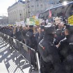 Los indignados pensionistas rodeando el Congreso. RTVE